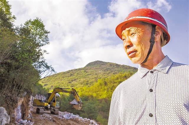 2016年5月10日,巫溪縣紅池壩鎮(zhèn)中崗村,林榮成看著正在施工的機耕道。