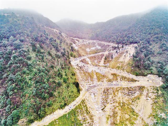 2017年12月13日,中崗村通往女兒廠藥材基地的機耕道已通車,但仍十分險要。 記者 謝智強 攝