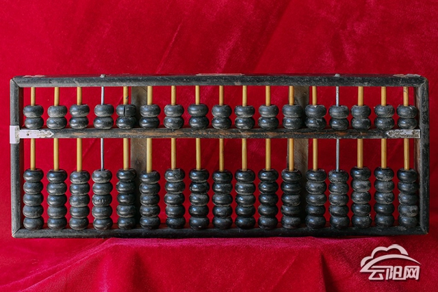 在云陽地稅局二樓的老物件展廳中,有一把上世紀(jì)八十年代的17檔7珠老式算盤,銘牌上生產(chǎn)廠家的電話號(hào)碼還是五位數(shù)。由于年代較久,而使用頻率又極高,有兩顆算珠已出現(xiàn)裂口,其余算珠和木邊框也是傷痕累累、體無完膚,只有四角的鋁質(zhì)包皮尚較完好,然而,已是重新?lián)Q過了的。
