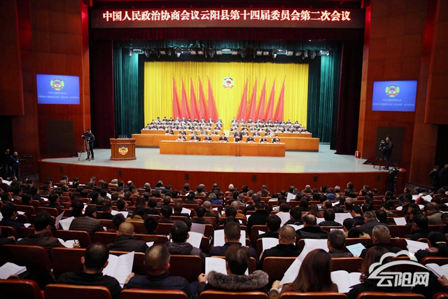 云陽(yáng)網(wǎng)訊(記者 楊梅娜 劉興敏 丁齊 實(shí)習(xí)生 彭博 )1月11日,中國(guó)人民政治協(xié)商會(huì)議云陽(yáng)縣第十四屆委員會(huì)第二次會(huì)議在市民文化活動(dòng)中心劇場(chǎng)隆重開幕。200多名政協(xié)委員匯聚一堂,共商云陽(yáng)改革發(fā)展大計(jì)。整個(gè)會(huì)場(chǎng)歡慶祥和,象征全國(guó)各族人民大團(tuán)結(jié)的政協(xié)會(huì)徽讓會(huì)場(chǎng)更加莊重。