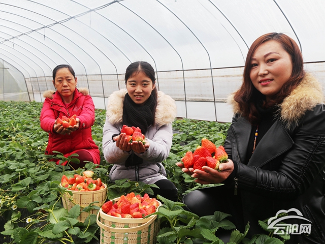 云陽網(wǎng)訊(記者 鄧?yán)冢翱炜?這里有幾顆又紅又大的草莓······”近日,記者在人和街道長河村草莓基地大棚里看到,一排排通紅的草莓掛在綠葉叢中,十分誘人,前來采摘草莓的游客絡(luò)繹不絕。