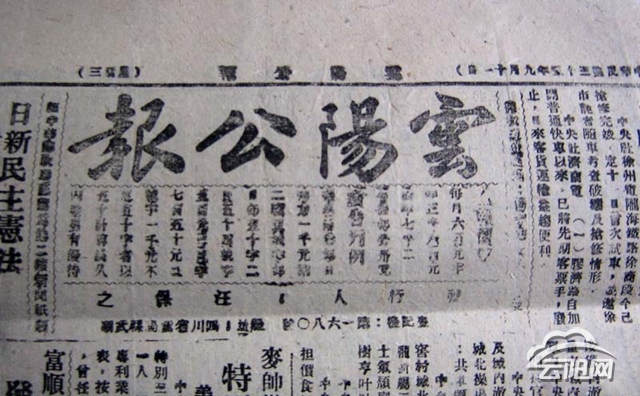 民國三十五年云陽公報馮玉祥題寫的刊頭