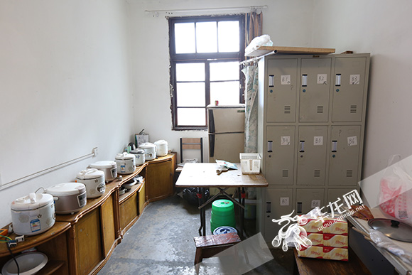 共享廚房里有電飯煲、冰箱和大立柜等物品。 記者 劉嵩 攝