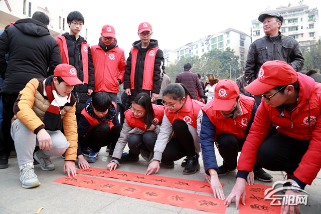 云陽(yáng)網(wǎng)訊(記者 王彬彬 實(shí)習(xí)生 劉耕銘)“老爺爺,等您要的這幅春聯(lián)晾干一下就給您送過(guò)來(lái)?!?月6日,在雙江街道桂灣社區(qū),一群穿著紅色褂子的志愿者為居民贈(zèng)送春聯(lián),還上門(mén)貼春聯(lián),為老百姓送去節(jié)日的祝福。