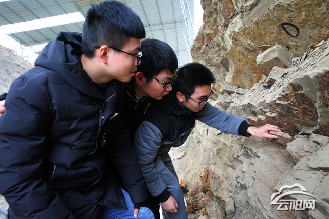 在臨時(shí)化石存放室內(nèi),工作人員詳細(xì)介紹了恐龍化石的發(fā)現(xiàn)和化石墻的發(fā)掘過程,以及專家學(xué)者對(duì)化石群的探秘情況。同學(xué)們來到發(fā)掘現(xiàn)場(chǎng),了解了化石形成的原因,讓課本上的知識(shí)得到了很好的印證。(劉興敏 攝)