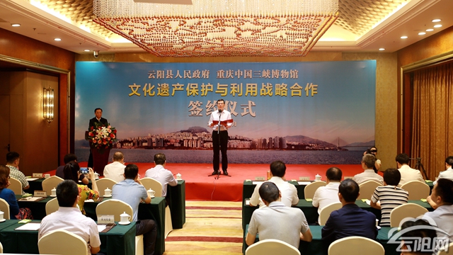 當(dāng)天上午,云陽(yáng)縣政府和重慶中國(guó)三峽博物館舉行戰(zhàn)略合作簽約儀式,市文化委副主任、文物局局長(zhǎng)幸軍,重慶中國(guó)三峽博物館館長(zhǎng)程武彥,縣委副書記、縣長(zhǎng)覃昌德,縣委常委、宣傳部部長(zhǎng)丁笙洺等領(lǐng)導(dǎo)出席簽約儀式。