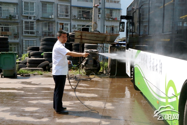 云陽網(wǎng)訊(記者 王彬彬 實(shí)習(xí)生 陳美岑)5月16日,記者來到東城車站的公交車停車場(chǎng),看到公交車司機(jī)張偉正在清洗公交車。