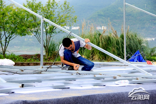 云陽(yáng)縣文化委工作人員余浪說(shuō):“昨晚受大風(fēng)影響,比賽現(xiàn)場(chǎng)部分設(shè)施吹倒,為保證比賽正常進(jìn)行,我們組織了施工人員從早上6點(diǎn)不停歇地忙到7點(diǎn)40分,盡快地恢復(fù)賽場(chǎng),希望能給參賽人員一個(gè)更好的比賽環(huán)境?!?/p>