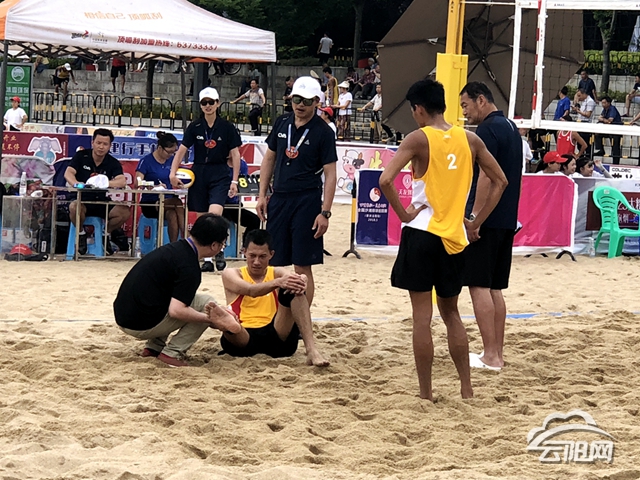 云陽網(wǎng)訊(實習(xí)生 鄧庭庭 鄭紅均)5月18日,記者在2018全國沙灘排球巡回賽云陽站比賽現(xiàn)場看到,醫(yī)務(wù)處的王醫(yī)生和同事正關(guān)注著賽場上運動員和觀賽區(qū)群眾的身體狀況。
