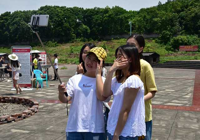 正值中午,太陽火辣辣,但是也比不上大家的熱情,不少情侶身著情侶裝,帶著自拍桿在活動現(xiàn)場拍下合照。