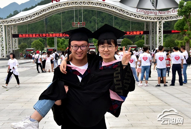 5月19日,來自各地的大學(xué)生陸續(xù)到達(dá)活動(dòng)首站——張飛廟,在廟前廣場(chǎng),一對(duì)對(duì)情侶同貼“忠”字,表達(dá)著對(duì)愛情忠貞不渝的心意?!皝韥韥?,大家一起舉杯,祝愿我們的情誼天長(zhǎng)地久?!彪S著一聲呼喝,十余人舉杯、暢飲、摔碗,一氣呵成,慷慨激昂。正值中午,太陽(yáng)火辣辣的,但也比不上大家的熱情,不少情侶身著情侶裝,舉起自拍桿在活動(dòng)現(xiàn)場(chǎng)合照留念。