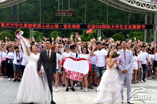 “3、2、1,大家一起跳起來(lái)!”5月19日,夜幕降臨后,在云陽(yáng)龍缸售票廳的廣場(chǎng)上,隨著倒計(jì)時(shí)結(jié)束,篝火被瞬間點(diǎn)燃,在身著節(jié)日盛裝的土家兒女帶領(lǐng)下,1000余名大學(xué)生手拉手圍著篝火歡快地跳起擺手舞,場(chǎng)面震撼。跳完傳統(tǒng)的擺手舞后,大家意猶未盡,又踏著節(jié)拍,跳起了時(shí)下流行的兔子舞、海草舞。在火光的映照下,眾人還合唱起《小幸運(yùn)》,輕快的旋律和揮動(dòng)的熒光棒讓現(xiàn)場(chǎng)沉浸在一派歡樂(lè)氣氛中。
