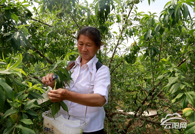 5月29日,在鳳鳴鎮(zhèn)陽鳳村的晚熟桃基地里,工人們正在蔬果。該基地種有晚熟桃100余畝,基地在提升水果產(chǎn)業(yè)由“量”向“質(zhì)”轉(zhuǎn)型過程中,充分利用科技知識(shí),力爭(zhēng)一次性轉(zhuǎn)型成功。據(jù)悉,該桃園的晚熟桃將在7月底進(jìn)入采摘期,可持續(xù)到8月底。(王彬彬 攝)