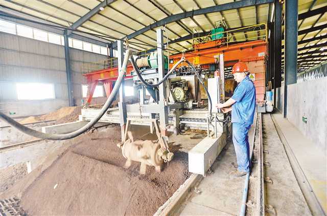5月22日,豐都縣高家鎮(zhèn)重慶豐澤園肥業(yè)有限公司工人正在操作養(yǎng)殖有機(jī)廢棄物無(wú)害化處理生產(chǎn)線。記者 鄭宇 攝