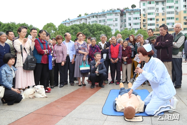 “找準(zhǔn)位置后,用手掌開始下壓……“活動(dòng)現(xiàn)場,現(xiàn)場居民將醫(yī)務(wù)人員圍成一個(gè)圈,聚精會(huì)神地觀察著護(hù)士們的現(xiàn)場示范心肺復(fù)蘇應(yīng)急救助的小細(xì)節(jié)。醫(yī)務(wù)人員還通過懸掛橫幅、設(shè)立咨詢臺(tái)、宣傳展板、等方式向群眾開展宣傳活動(dòng)。