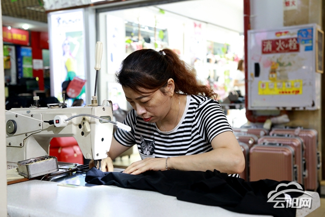 云陽(yáng)網(wǎng)訊(記者 王彬彬 實(shí)習(xí)生 陳美岑)6月8日,記者來(lái)到云江大道地下商城235號(hào)門(mén)鋪上,楊暑蘭正在為顧客縫補(bǔ)衣服。楊暑蘭今年46歲,是一名縫補(bǔ)工,從事縫補(bǔ)時(shí)間有30余年時(shí)間了。