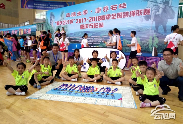 云陽網訊(記者 李旭忠 通訊員 黃鈺涵)6月9日至10日,“重慶藝才杯”2017-2018賽季全國跳繩聯(lián)賽的石柱站賽事舉行,我縣蔈草鎮(zhèn)歧陽小學的參賽隊伍在本次比賽中獲得佳績。
