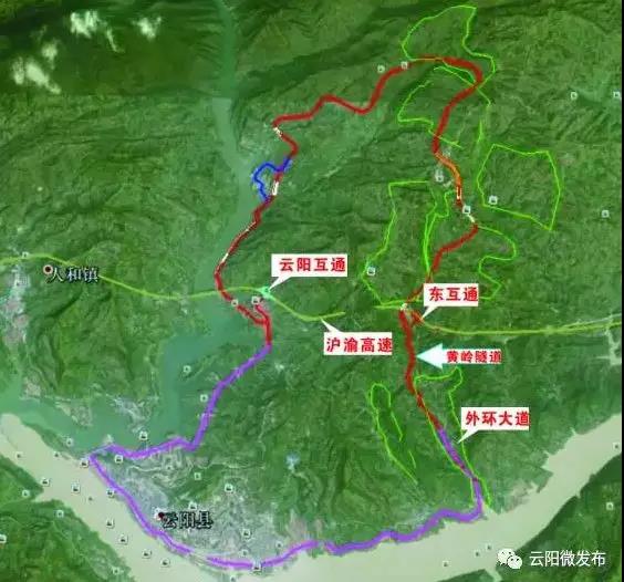 云陽東互通立交工程將新建高速公路連接線一條,全長2441米,主線整體式路基寬度24.5米,其中,新建橋梁5座,總長1117.4米,總投資近2億元。