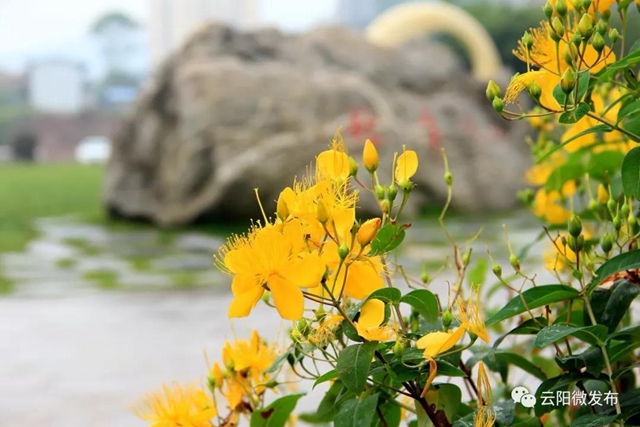 月光草坪內(nèi)處處可見的金絲桃,金黃色的花朵為公園增添一抹生機(jī)。