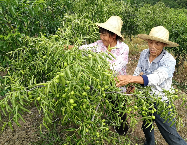 6月24日,南溪鎮(zhèn)鹽渠村的冬棗示范基地里,工人們正在將弱果、壞果、小果全部摘掉,確保冬棗的質(zhì)量和口感。據(jù)悉,該基地有冬棗200畝,預(yù)計(jì)在9月份進(jìn)入采摘期。(王彬彬 攝)