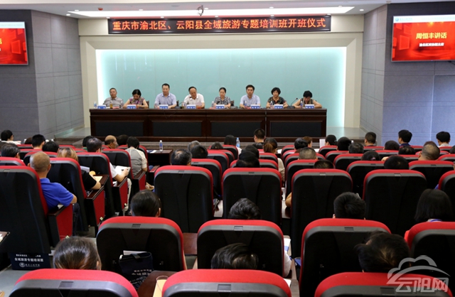 云陽網(wǎng)訊(實習(xí)生 陳美岑)8月6日,渝北區(qū)、云陽縣全域旅游專題培訓(xùn)開班儀式在重慶三峽學(xué)院百安校區(qū)舉行。渝北區(qū)政協(xié)副主席周恒豐、云陽縣政協(xié)副主席賈曉英出席開班儀式。