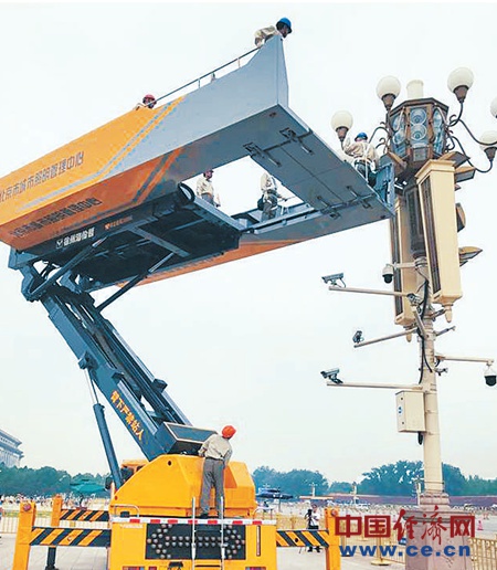 華燈車在檢修和清洗華燈。經(jīng)濟(jì)日?qǐng)?bào)-中國(guó)經(jīng)濟(jì)網(wǎng)記者 常 理攝