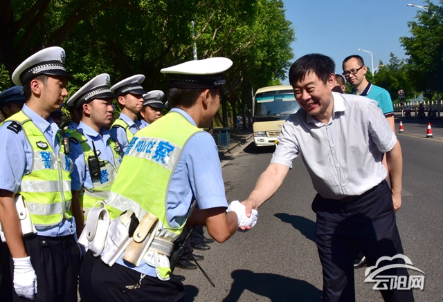 在縣森林消防應(yīng)急大隊(duì)龍脊嶺公園訓(xùn)練點(diǎn),消防員們正有序開(kāi)展訓(xùn)練活動(dòng)。趙勇肯定了大家不怕吃苦、不怕流汗的敬業(yè)精神,他說(shuō),正是因?yàn)橄拦俦鴱牟恍傅。谟谟?xùn)練,所以群眾的消防安全才有保障。來(lái)到縣交巡警大隊(duì)臥龍橋執(zhí)法點(diǎn),趙勇和大家親切握手,一一送上防暑降溫物品,了解交巡警們高溫天氣下的執(zhí)法時(shí)間、重點(diǎn)難點(diǎn)問(wèn)題等,他關(guān)切地說(shuō):“感謝你們堅(jiān)守在高溫第一線,為全縣交通安全打造了一道堅(jiān)實(shí)的防護(hù)線,大家在做好工作的同時(shí),也要注意防暑降溫,做到高高興興上班,平平安安下班。”