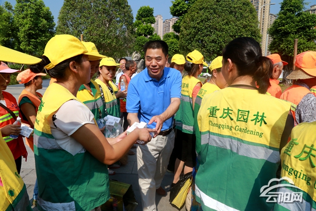 云陽網(wǎng)訊(記者 王彬彬)炎炎夏日送清涼,濃濃關(guān)懷暖人心。8月13日,縣委副書記王光榮為高溫下堅(jiān)守在戶外一線的工作人員送去了夏日的“清涼”和關(guān)懷。