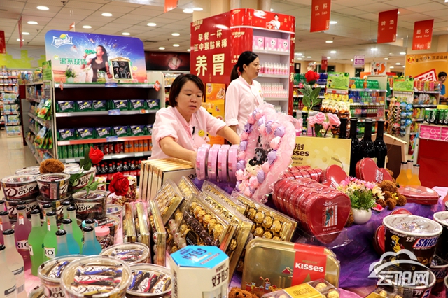 “我挑選了一盒心形巧克力,準(zhǔn)備七夕情人節(jié)送給喜歡的人?!痹谑浙y臺(tái)結(jié)賬的王先生說。