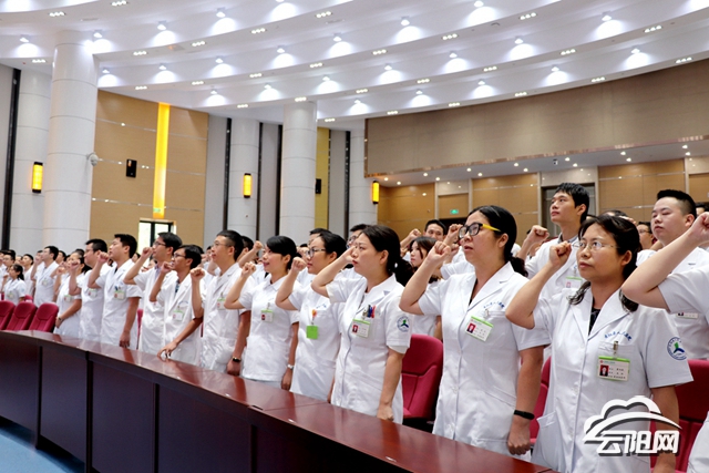 會議在觀看新院宣傳片中拉開序幕,由醫(yī)務(wù)科代表帶領(lǐng)與會醫(yī)師宣讀“中國醫(yī)師宣言”。
