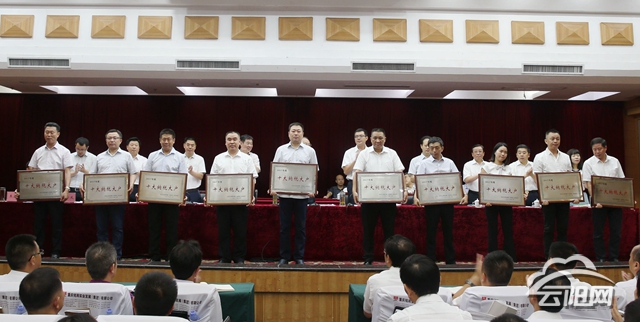 會議對2017年度鄉(xiāng)鎮(zhèn)(街道)、部門綜合目標(biāo)考核的先進(jìn)集體,銀行業(yè)、保險(xiǎn)業(yè)金融機(jī)構(gòu)支持云陽發(fā)展的先進(jìn)單位,“十大”納稅大戶,“十佳”優(yōu)秀企業(yè)經(jīng)營者進(jìn)行了表彰。