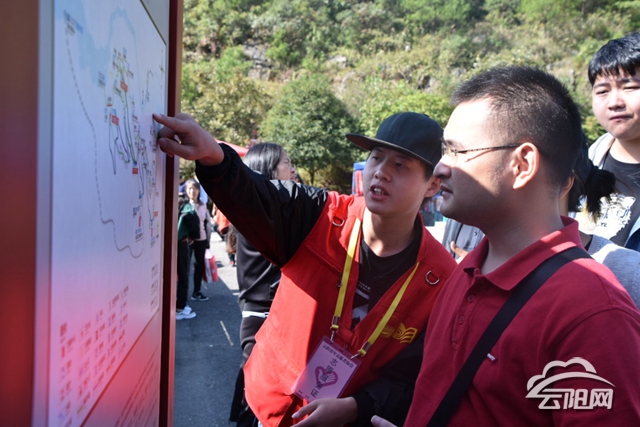 “聽說景區(qū)有志愿服務站點,咱們?nèi)プ稍円幌??!睆臏刂輥淼耐跸壬谝淮蝸淼烬埜拙皡^(qū),對景區(qū)概貌不清楚,志愿者詳細介紹了景區(qū)的基本情況和游覽路線,王先生對整個龍缸景致表示稱贊并感嘆大自然的鬼斧神工。