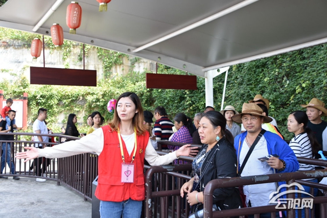 志愿者身著紅色靚麗的志愿者馬甲分別在景區(qū)游客服務中心和北門、南門的主要出入口,以及天河廣場發(fā)往云端廊橋、龍缸南門、大安洞的觀光車驛站點等主要游客集散點開展引導和咨詢、勸導不文明行為、維護游人乘車秩序、提供便民服務等活動,既弘揚了“奉獻、友愛、互助、進步”的志愿服務精神,也扮靚了景區(qū)風景。