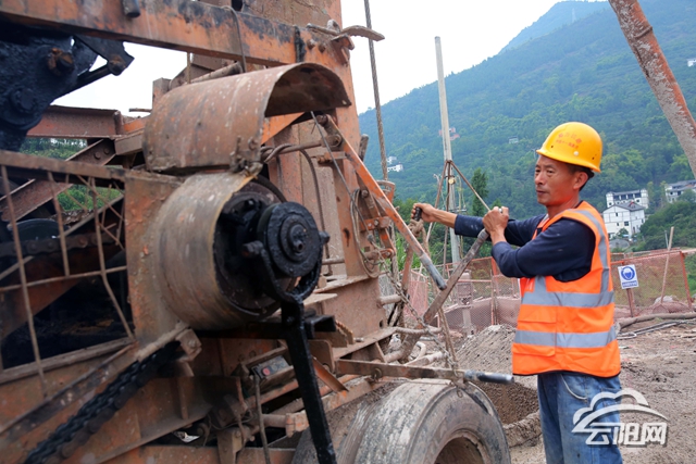 在施工現(xiàn)場,記者看到,打樁機在不停地轟鳴,樁基工人正搶抓工期,利用沖擊鉆機對最后的四個橋墩進行鉆孔施工;裝載機來回奔跑,整個工地一派繁忙。