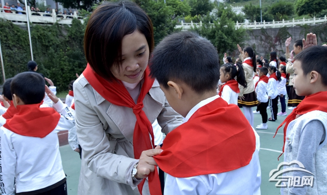 伴隨著莊嚴的國歌聲,鮮艷的隊旗、紅領巾,入隊儀式正式拉開序幕,朗誦節(jié)目《少年中國說》鏗鏘有力,充分展現(xiàn)新時代少年的精神,在嘹亮的歌聲中,老隊員給新隊員授紅領巾,并將鮮艷的紅領巾佩戴在他們的胸前,互相莊重的敬隊禮,一年級的同學們一個個小臉上洋溢著燦爛的笑容。大隊長還帶領少先隊員重溫入隊誓詞并呼號:“準備著,為共產(chǎn)主義事業(yè)而奮斗——時刻準備著!”誓言鏗鏘有力,響徹操場。