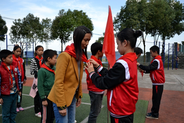 活動(dòng)在新隊(duì)員入隊(duì)儀式在雄壯有力的出旗曲中拉開序幕。禮儀示范隊(duì)員為學(xué)校領(lǐng)導(dǎo)及中隊(duì)輔導(dǎo)員敬獻(xiàn)紅領(lǐng)巾,優(yōu)秀隊(duì)員們?yōu)樾玛?duì)員們佩戴紅領(lǐng)巾。鮮艷的隊(duì)旗下,新隊(duì)員們莊嚴(yán)宣誓,表達(dá)了成為光榮少先隊(duì)員的自豪心情,和為紅領(lǐng)巾增光添彩的決心。隨后,大隊(duì)輔導(dǎo)員向全體少先隊(duì)員們?cè)敿?xì)講解了少年先鋒隊(duì)隊(duì)徽、大隊(duì)旗、中隊(duì)旗等少先隊(duì)知識(shí),希望全體少先隊(duì)員以嚴(yán)格標(biāo)準(zhǔn)規(guī)范自己的行為,從小事做起,從身邊做起,聽黨的話,努力學(xué)習(xí),團(tuán)結(jié)協(xié)作,全面發(fā)展,茁壯成長(zhǎng),牢記自己的光榮使命,爭(zhēng)做新時(shí)代好隊(duì)員。最后,儀式在少先隊(duì)隊(duì)員們“為共產(chǎn)主義事業(yè),時(shí)刻準(zhǔn)備著!”的呼號(hào)聲中圓滿結(jié)束。