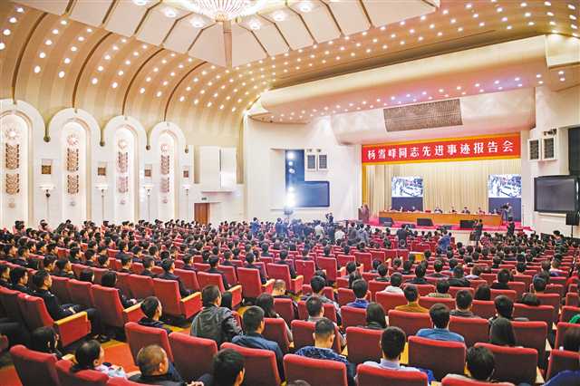 10月15日,人民大會(huì)堂,楊雪峰同志先進(jìn)事跡報(bào)告會(huì)現(xiàn)場。