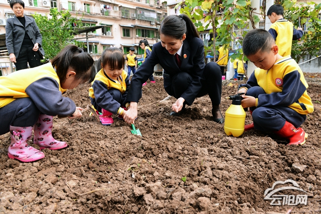 云陽網(wǎng)訊(通訊員 謝洪)10月18日,重慶市云陽縣實驗幼兒園,來自縣人民檢察院的“莎姐檢察官”同該幼兒園的孩子們攜手走進樓頂菜園地,通過栽種大蒜、蘿卜、土豆、蔥花、青菜頭等蔬菜種子,共同在秋天里播下金色的希望,收獲童年時代的夢想家園。
