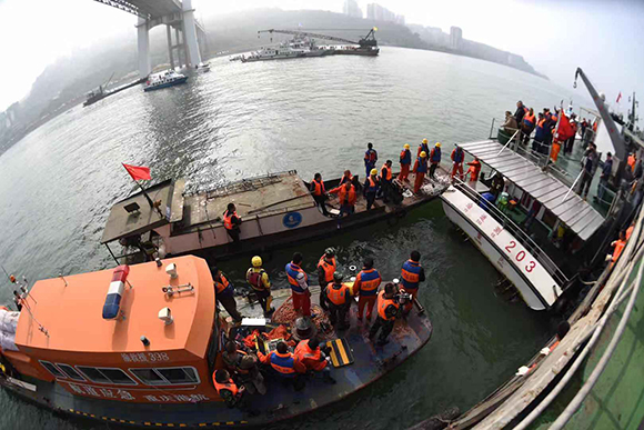 現(xiàn)場救援指揮部已制定車輛打撈出水方案,全力展開搜救工作。 三峽都市報社 冉孟軍 攝