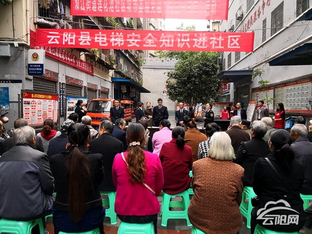 云陽(yáng)網(wǎng)訊(記者 段斯斯 通訊員 凌天虹)近日,縣質(zhì)監(jiān)局在雙江街道蓮花池社區(qū)廣場(chǎng)組織開(kāi)展了電梯安知識(shí)進(jìn)社區(qū)暨“社區(qū)一家親”活動(dòng)。質(zhì)監(jiān)局機(jī)關(guān)黨員干部、駐社區(qū)共駐共建單位代表及小區(qū)居民近100余人參加了活動(dòng)。