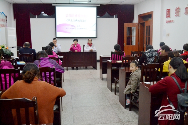 云陽網(wǎng)訊(實(shí)習(xí)生 鄧庭庭)為了有效預(yù)防和控制幼兒園手足口病的發(fā)生和流行,保障兒童身體健康,11月5日,實(shí)驗(yàn)幼兒園邀請雙江街道社區(qū)衛(wèi)生服務(wù)中心的醫(yī)務(wù)人員舉辦了一期“預(yù)防手足口病”的專題培訓(xùn),全園70多名教職工參加了培訓(xùn)。