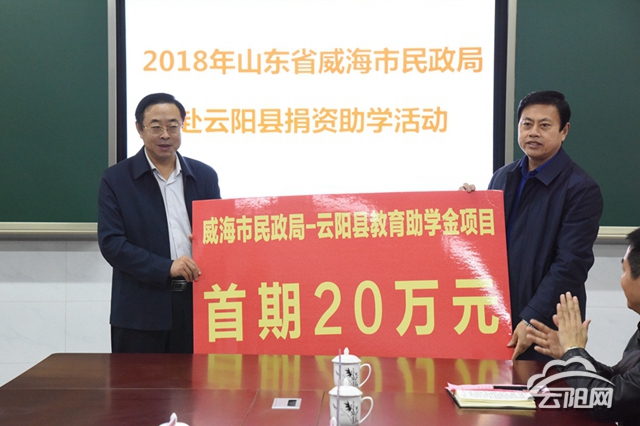 云陽(yáng)網(wǎng)訊(記者 王彬彬)11月14日,山東省威海市民政局黨委書(shū)記、局長(zhǎng)欒波率隊(duì)到南溪中學(xué)開(kāi)展捐資助學(xué)活動(dòng),為學(xué)校捐贈(zèng)20萬(wàn)元。