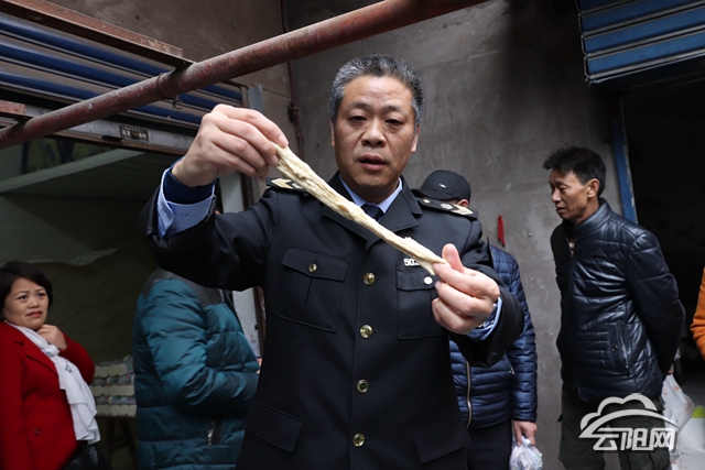 云陽網(wǎng)訊(實習生 彭博)近日,云陽面業(yè)協(xié)會接到一消費者投訴,稱其購買的面條含膠,不能食用。接到投訴后,11月16日,面業(yè)協(xié)會會同縣食藥監(jiān)局、公安局前往抽查、檢測。