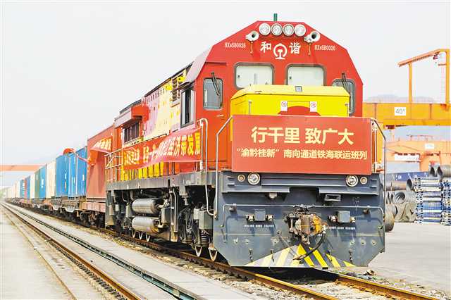 2017年9月25日,“渝黔桂新”鐵海聯運班列常態(tài)化運行首趟班列在重慶鐵路口岸首發(fā)。該線路從重慶鐵路口岸出發(fā),通過鐵路至廣西欽州港,再海運至新加坡等東盟各港口,進而連通國際海運網絡。
