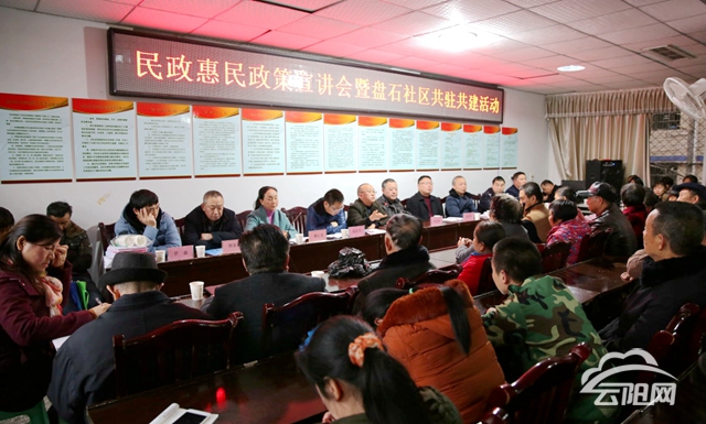 云陽網(wǎng)訊(記者 楊梅娜 通訊員 謝蜀云)11月27日,盤龍街道盤石社區(qū)聯(lián)合縣民政局等城市基層黨建共筑共建單位和盤龍派出所開展民政惠民政策宣講暨社區(qū)共筑共建活動(dòng)。