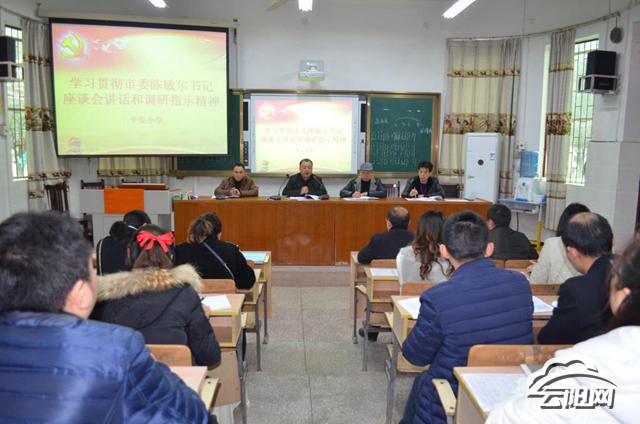 云陽網(wǎng)訊(通訊員 冉秋)11月28日,平安鎮(zhèn)平安小學(xué)全校103名教職工學(xué)習(xí)貫徹市委書記陳敏爾座談會(huì)講話和調(diào)研指示精神。