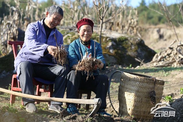 “這種植物,要三年生長期,目前在地里已生長兩年多了。它開花非常漂亮,清新可人,香氣濃郁,我們都叫它'神仙草'?!毕﹃栂?,楊青山和老伴小心翼翼地刨開松軟厚實的土壤,不大功夫,帶著根須和塊莖的神秘藥材就露出真容。