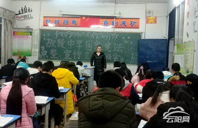 云陽網(wǎng)訊(實習(xí)生 鄭紅均)12月4日是我國第五個“國家憲法日”,也是第一個“憲法宣傳周”。近日,故陵中學(xué)開展了以“尊崇憲法、學(xué)習(xí)憲法、遵守憲法、維護(hù)憲法、運(yùn)用憲法”為主題的“國家憲法日”的學(xué)習(xí)宣傳教育活動。
