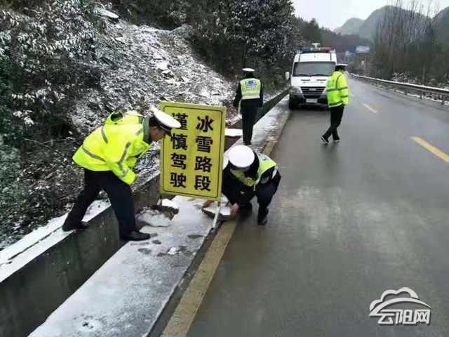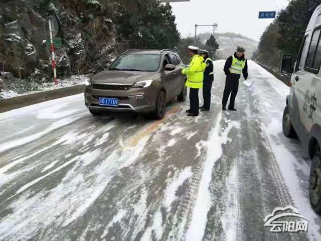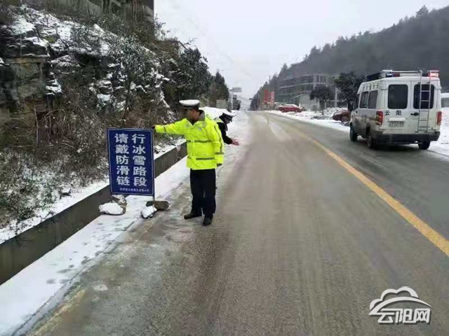 云陽網(wǎng)訊(記者 鄧?yán)冢┐笱┑剑?2月7日,云陽縣清水鄉(xiāng)、上壩鄉(xiāng)、大陽鎮(zhèn)等高海拔地區(qū)下雪,受此影響,降雪區(qū)域部分道路結(jié)冰易滑,給車輛出行帶來了極大不便。為保障道路安全通行,縣公安局交巡警大隊全員上路,加大路面巡邏管控力度,消除安全隱患,全力保障轄區(qū)道路交通安全。