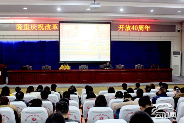 云陽(yáng)網(wǎng)訊(記者 楊梅娜 通訊員 張酉權(quán))12月18日,云陽(yáng)縣第三初級(jí)中學(xué)組織全體黨員及無(wú)課教師觀看了慶祝改革開放40周年大會(huì)。